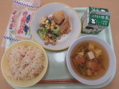 ちらしずし 牛乳 とりにくのこめこあげ ビーンズサラダ すましじる