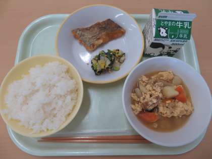 ごはん 牛乳 あげざかなのレモンあじ いりだいずあえ