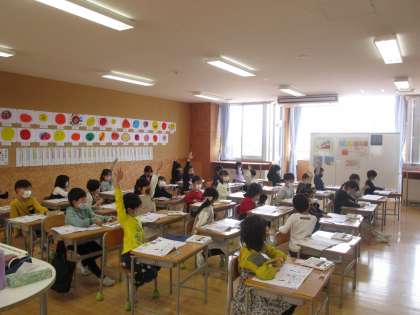 国語科「うたにあわせてあいうえお」の学習をしています。