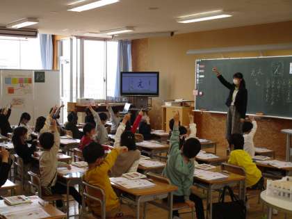 国語科「うたにあわせてあいうえお」の学習をしています。