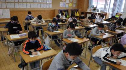 今日は、各クラス順番に自転車教室を行いました。DVDを見ながら危険な場面について、どうしたら安全に乗車できるかみんなで考えたり、正しい点検や乗車の仕方についての実演を見たりしました。最後には、学んだことについての試験も行いました。