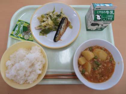 ごはん 牛乳 いわしのしょうがあじ やさいソテー まっちゃだいず
