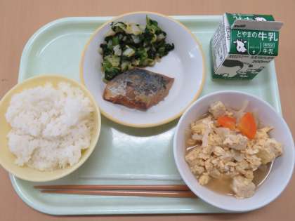 ごはん 牛乳 さわらのさいきょうやき おひたし おやこに