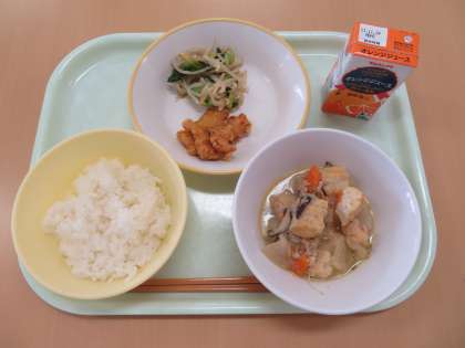 ごはん オレンジニュース いかのかりんあげ もやしのおひたし