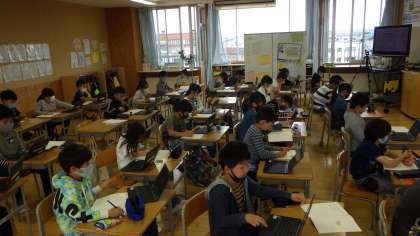 社会科の学習では身近なごみの処理について学習しています。一人一台端末も活用しながらゴミ処理の仕組みについて調べていきます。