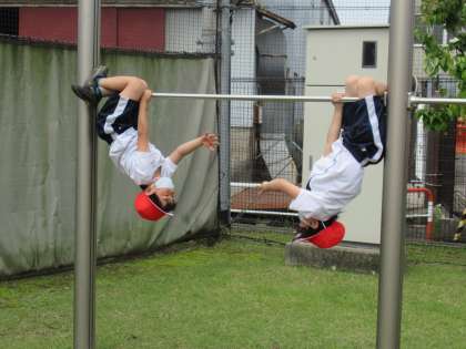 今日は、生活科で「いっしょにあそぼう」の学習をしました。グラウンドで、たくさんの友達と一緒に、鬼ごっこ、鉄棒、砂場でのすもう等、色々な遊びを楽しみました。