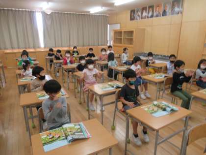 音楽科の学習では、曲のリズムに合わせて手拍子をしたり、じゃんけんをしたりしました。友達と楽しみながら歌ったり、体を動かしたりすることができました。