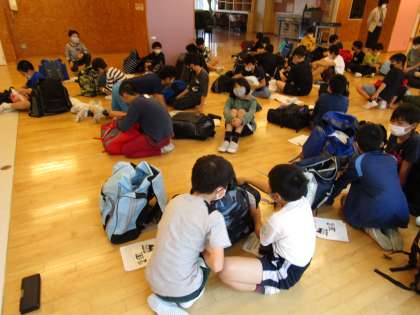 宿泊学習に向けて、準備や計画を進めています。先日、使用する施設について写真を見ながら学習しました。入浴の仕方、野外炊飯の場所など、写真を見ることで子どもたちはイメージができた様子でした。また今日は、荷物点検を行いました。必要な物が揃っているか、一つ一つ確認しました。