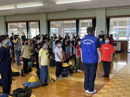 子どもの村の広場で昼食を食べた後、入所式を行いました。