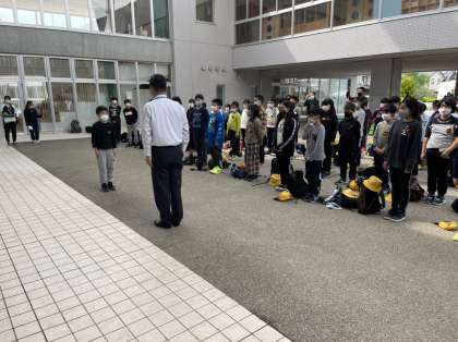 富山市子どもの村での活動を終えて、学校に到着しました。