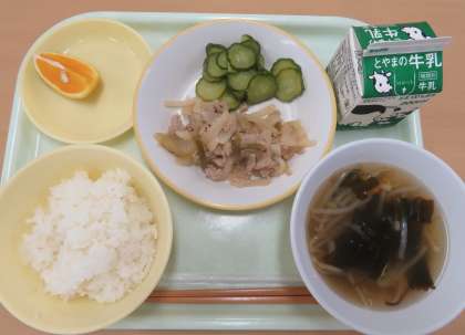 ごはん 牛乳 ぶたにくのしょうがやき きゅうりもみ わかめスープ