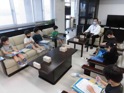 1年生の子供たちは、学校探検を通して学校について詳しくなりました。今日は校長室や職員室、用務員室等の中から行きたい場所を選び、そこで働いてくださっている先生方にインタビューをしに行きました。子供たちは、初めて聞くお話や初めて見る道具に目を輝かせていました。