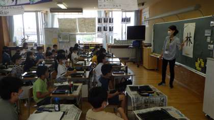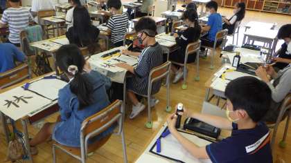書写の学習で「林」の清書をしました。心を落ち着かせ、集中して作品を仕上げることができました。
