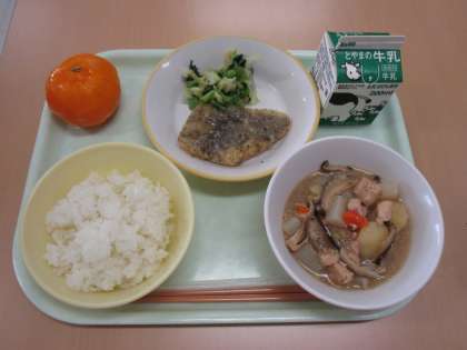 ごはん 牛乳 さかなのえごまみそかけ こまつなひたし