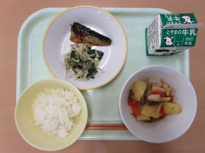 ごはん 牛乳 とりにくとやさいのうまに いわしのうめに しおナムル