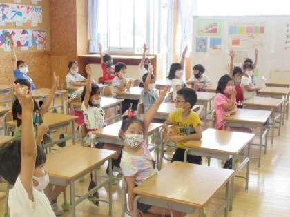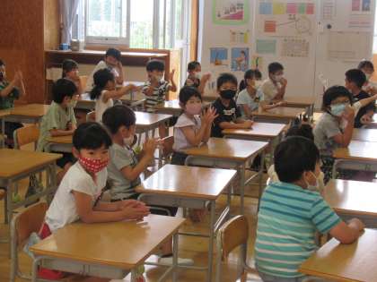 今日は、集会委員会が企画した「クラスの仲を深めよう集会」がありました。1年生は、スリーヒントクイズを楽しみました。答えが分かったら元気に手を挙げたり、友達が正解したら拍手をしたりしながら、和やかな時間を過ごすことができました。