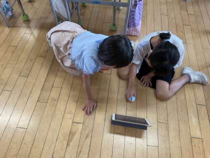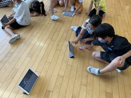 総合的な学習の時間でプログラミング教育の活動を行いました。今回は、iPadでプログラムを作り、Sphero miniという球体のロボットを動かしました。子供たちは、思ったように動かすことが難しいことを知りました。一方で、パソコン上の命令で具体的なものが動くのがとても楽しかったようです。