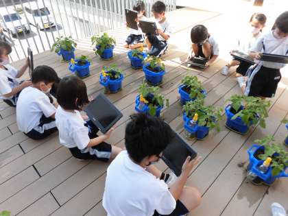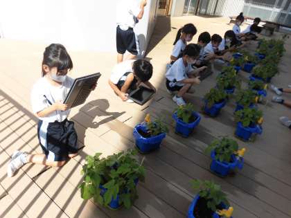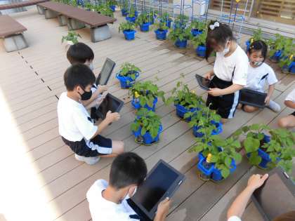 クロムブックの操作がぐんぐんと上達している1年生の子供たちです。先日はクロムブックを使い、生活科で育てているあさがおの写真を撮りました。過去の写真を見ながら「こんなに大きくなったんだね」と成長を喜んでいる様子でした。