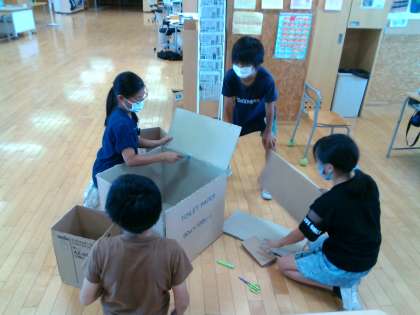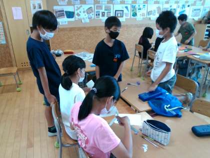 園児たちと仲よくなるための活動内容を自分たちで計画し、必要なものをグループで協力して製作しています。