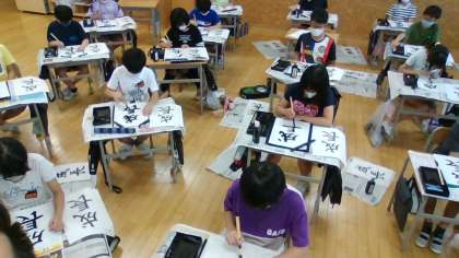 子供たちは、姿勢をよく一筆一筆を丁寧に毛筆に取り組んでいます。