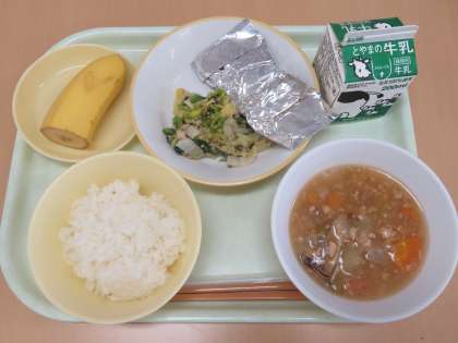 ごはん 牛乳 さばのぎんがみやき ごまあえ とうがんのそぼろあん