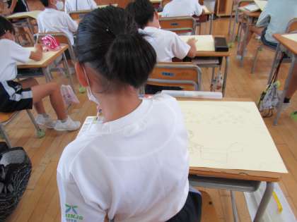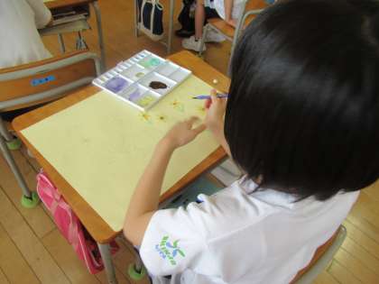 今日は、「123m花畑の思い出」の絵に、絵の具やクレヨンを使って色を塗りました。塗り方を工夫したり、クレヨンと絵の具を使い分けて塗ったりしました。完成がとても楽しみです。