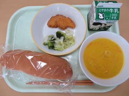 コッペパン 牛乳 チキンナゲット フレンチサラダ