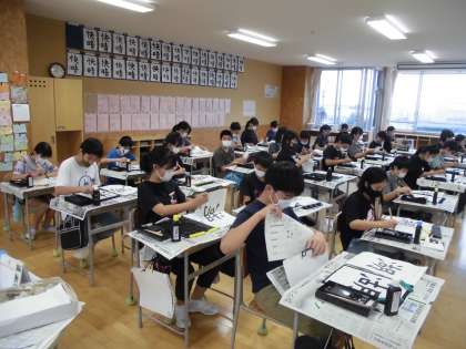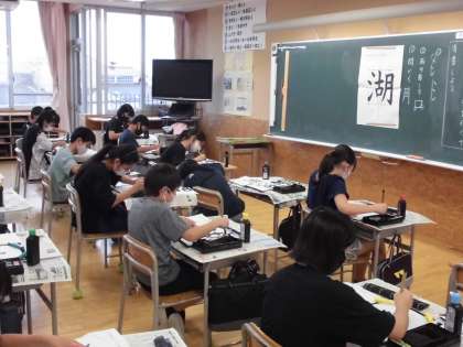 「湖」の清書を行いました。子供たちは、バランスよく書こうとお手本をよく見て書いていました。