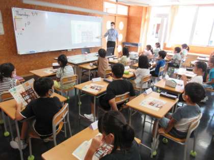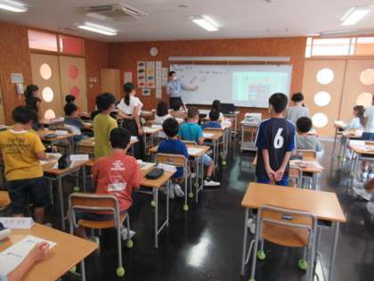 外国語の授業では文房具の読み方と発音を覚え、ビンゴゲームのカードに文房具を書き込み、先生からの「Do you have〜?」の質問でビンゴゲームを行いました。先生からの質問で出た文房具があると、子供達は元気よく「Yes I do!」と答え、○を付けていました。