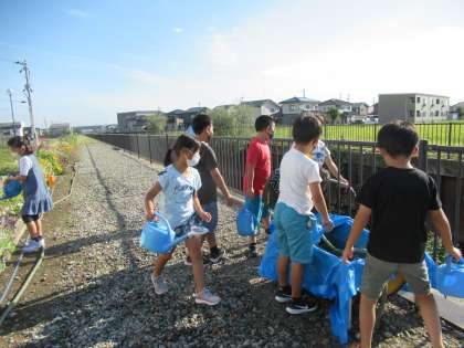 子供たちは毎朝、123m花畑の水やりをしています。「今日もきれいにさいているね」と花の成長を喜ぶ子供たちでした。