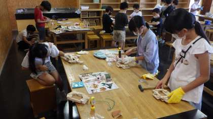 のこぎりと金槌を上手に使って、すてきな作品をつくることができました。次回は着色をして仕上げに入ります。