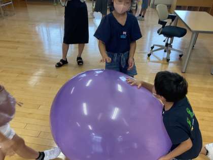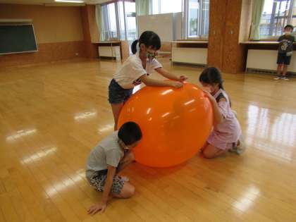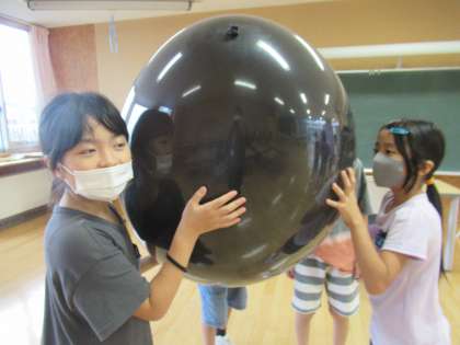 理科「音の性質」の学習の導入をしました。まずは、大きな風船を使い、音と振動が関係しているかを感じる実験をしました。