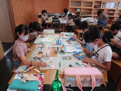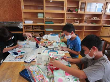 今日は釘打ちが終わり、色塗りをしました。「楽しく生活に使えるものをつくろう」をテーマに作品作りをしています。