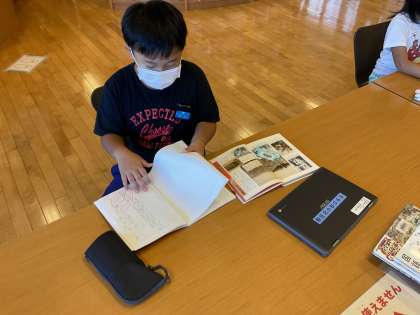 国語科で「ちいちゃんのかげおくり」の学習を始めました。まずは、時代背景を知るために図書室やクロムブックを使って戦争中の様子について調べました。