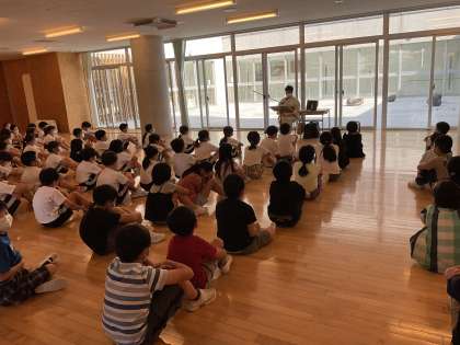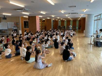 今年も鈴木優子先生に来ていただき、朗読会を行いました。お話は「きつつきの商売」「ちいちゃんのかげおくり」「とかげとぞう」「赤ずきんちゃん」でした。子供達は鈴木先生の話に聞き入って作品の世界観に入り込んでいました。また、目を瞑って聞いたり、手拍子を打ったりと楽しく聞く場面もありました。