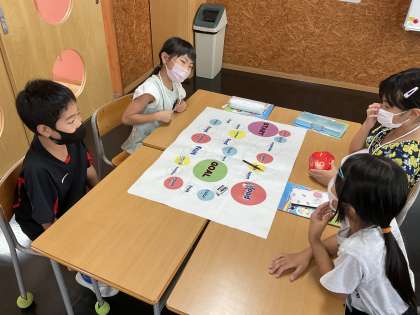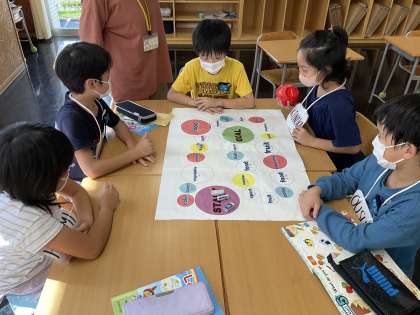 What ○○ do you like?の学習で双六をしました。とても盛り上がり、何度もWhat ○○ do you like? I like ○○のやりとりを練習しました。