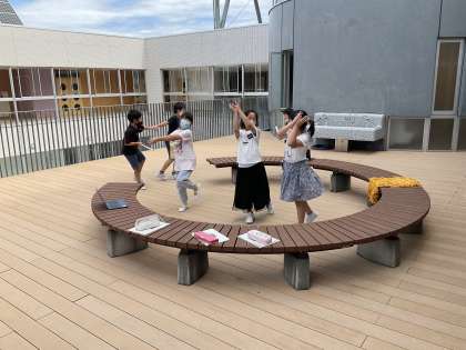 今年の3年生の学習発表会のテーマは、春から大切に育てている123m花畑です。123m花畑の歴史を学習したところ地域の方々の情熱がたくさん詰まっていることが分かりました。そこで、123m花畑の歴史を振り返りながら、大人と子供の思いや苦労、達成感を表現します。台詞パート、音楽パート、身体表現パートに分かれて、どうすれば当時の思いを表現できるかを考えながら、一生懸命に練習しています。