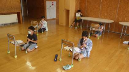 音楽の学習では、「陽気な船長」という曲のリコーダー演奏に取り組んでいます。スタッカートの特徴がでるように、何度も練習しました。
