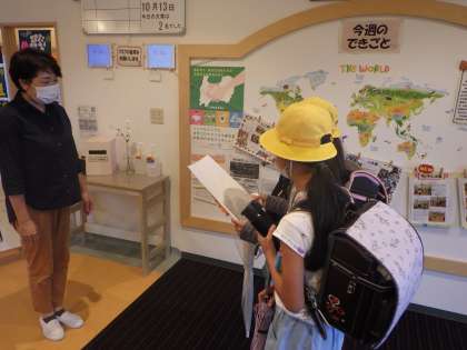 総合的な学習の時間には、環境を守るためにできることに取り組んでいます。地域の方にも呼びかけをしようと、新庄さくら保育園にポスターを持って行きました。身近なところから環境のためにできることをどんどん実行していきます。