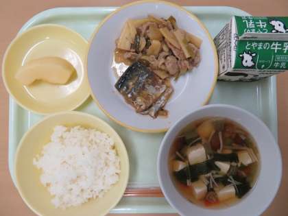ごはん 牛乳 さばのみそに マコモダケのオイスターソースいため