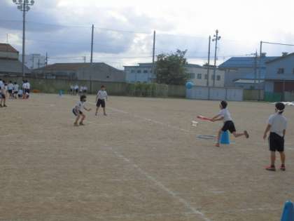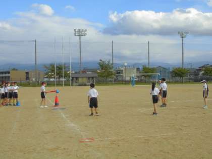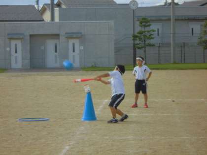 体育の学習で、ティーボールをしています。今日は、試合のルールを確認し、試合をしてみました。どうやったら上手に打てるのか友達とアドバイスをし合ったり、勝つためにどうすること大切か、チームで相談したりとお互いに声を掛け合って楽しそうに活動しています。