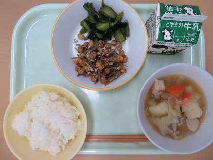 ごはん 牛乳 こざかないりフライビーンズ かいそうサラダ ポトフ