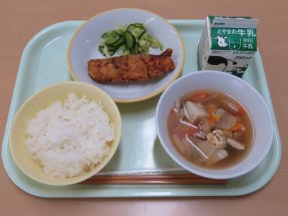 ごはん 牛乳 さかなのたつたあげ そえやさい こんさいじる