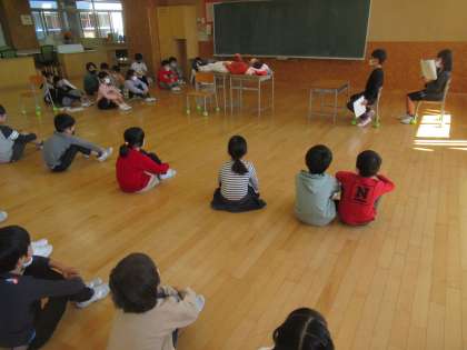 2年生が「お手紙」の音読劇の発表会に、1年生を招待してくれました。2年生の、役になりきった音読や動きに、1年生は驚かされていました。「早く私もお手紙の勉強をしたいな」「2年生さん、すごいな」といろいろな感想を話していました。
