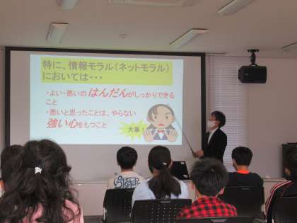 富山市教育センターより教育専門員の方が来校され、情報モラル小5講座が開かれました。インターネット上でコミュニケーションをとるときに気を付けなければいけないことや、SNSのよさと注意点などについて、分かりやすく教えていただきました。
