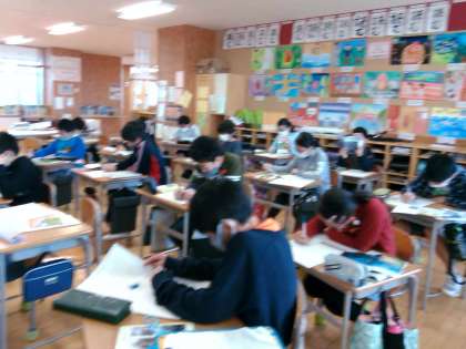 子供たちは立山カルデラ・砂防ダムの見学したことを新聞にまとめています。砂防ダムの魅力が伝わるように、新聞の見出しや資料を工夫しながらつくっています。