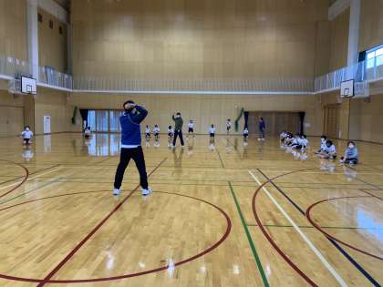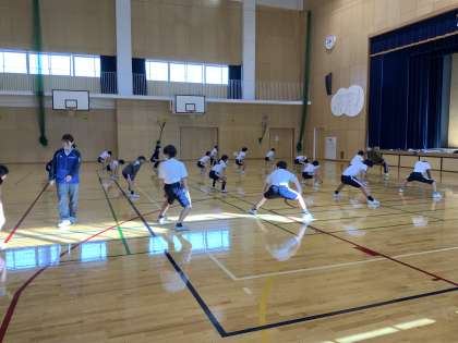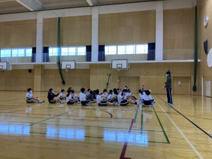 今日は、富山市体育協会スポーツ指導員の方が来校され、ボール運動について指導をしていただきました。ボールの握り方や、足の動かし方、力の入れ方等、様々なポイントを教えていただき、練習しました。