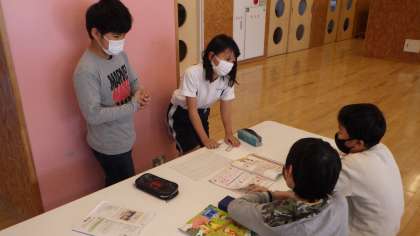 音楽の学習では、いろいろな打楽器でリズムづくりを行っています。いろいろな音色を組み合わせながらすてきな演奏になるよう工夫しています。