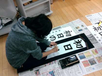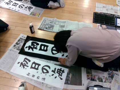 書き初めの練習が始まりました。5年生は「初日の海」を書きます。子供たちは手本をよく見ながら練習に励んでいます。