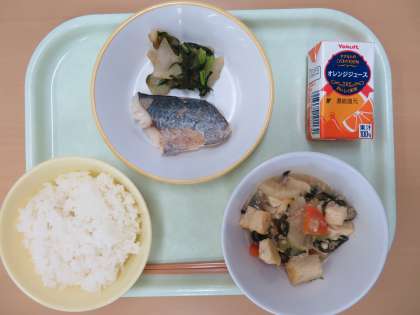 ごはん オレンジジュース あつあげのみそにこみ さわらのしおやき